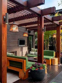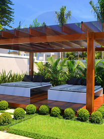 O pergolado de madeira é uma estrutura construída com madeira, apoiada em vigas de sustentação, em áreas externas. É uma ótima alternativa para quem busca criar um ambiente de relaxamento no jardim ou piscina, com uma sombra aconchegante. Quando coberto, pode servir de abrigo para carros ou virar espaço gourmet.